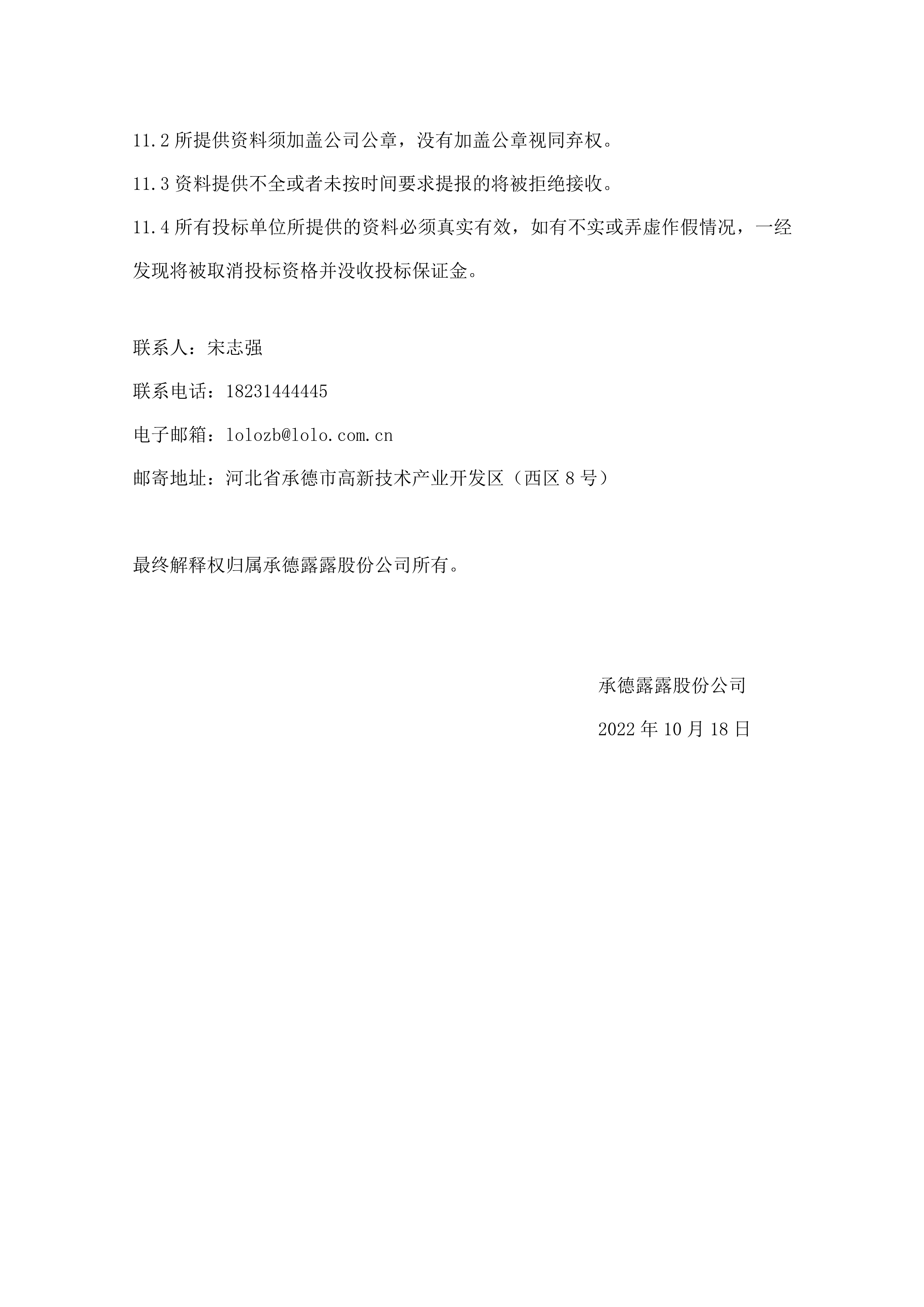 承德露露股份公司年產50萬噸露露系列飲料項目(一期)殺菌釜設備采購招標公告