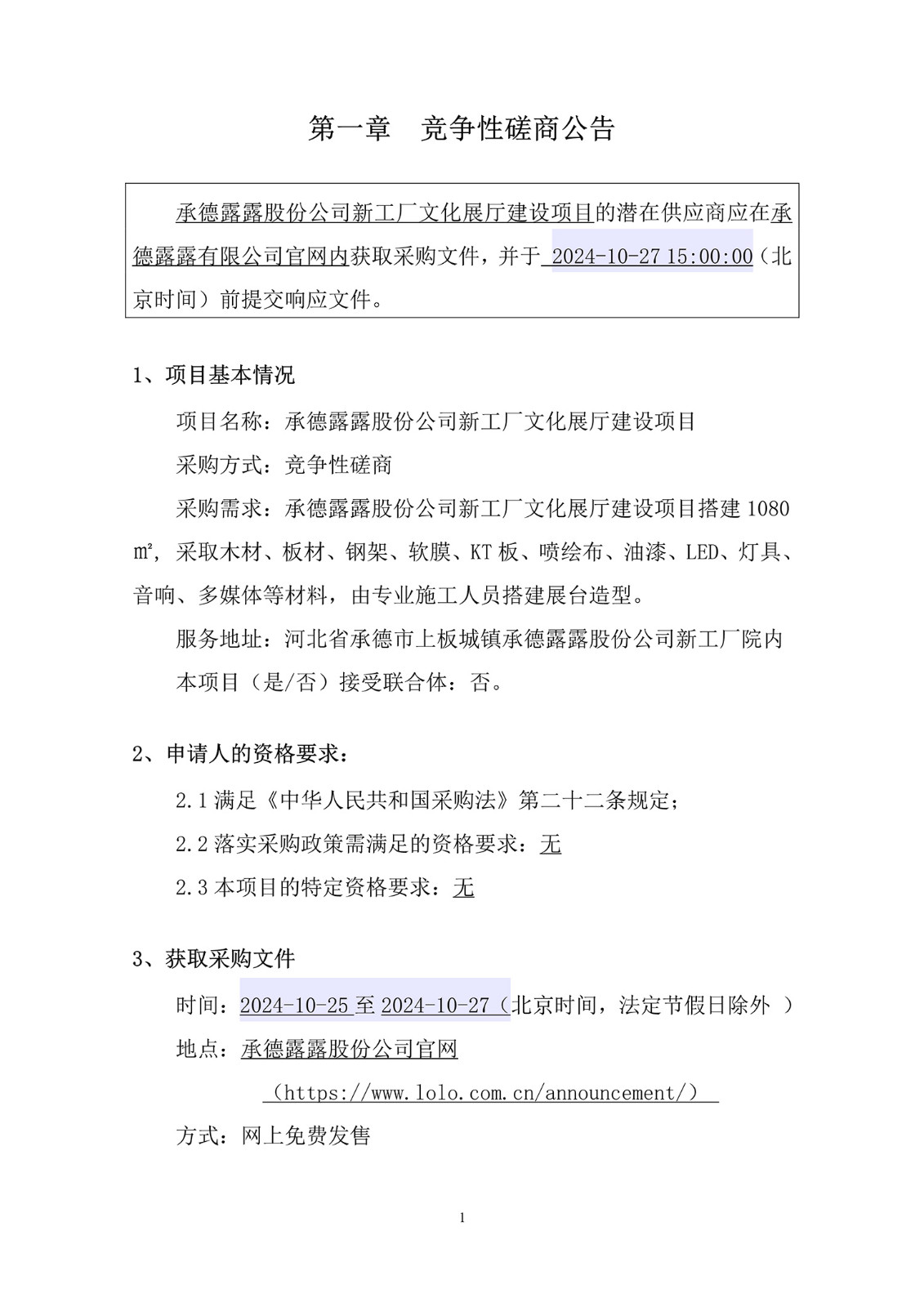 承德露露股份公司高鐵站媒體投放招標公告